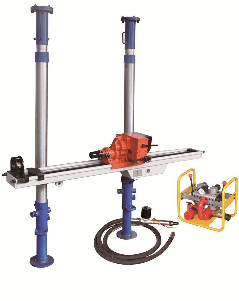 一般礦井在掘進前都要進行超前探放水,利用氣動架柱鉆機等探水設備打幾十米甚至一百米的探水孔,根據(jù)鉆頭的推進速度、巖屑成分等地質(zhì)資料,初步斷定巷道周圍的水質(zhì)水量,因此氣動架柱鉆機是預防突水、涌水等災害的發(fā)生主要工具。